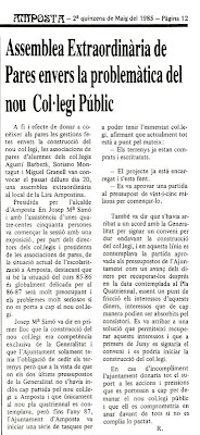 Assemblea Extraordinaria de Pares envers la problemàtica del nou Col·legi Públic (maig 1985)